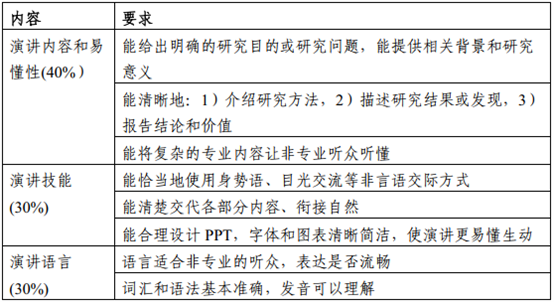 1.演讲要求:全英语口头汇报,使用PPT辅助演示。演讲时长5分钟,允许±1分钟的误差。