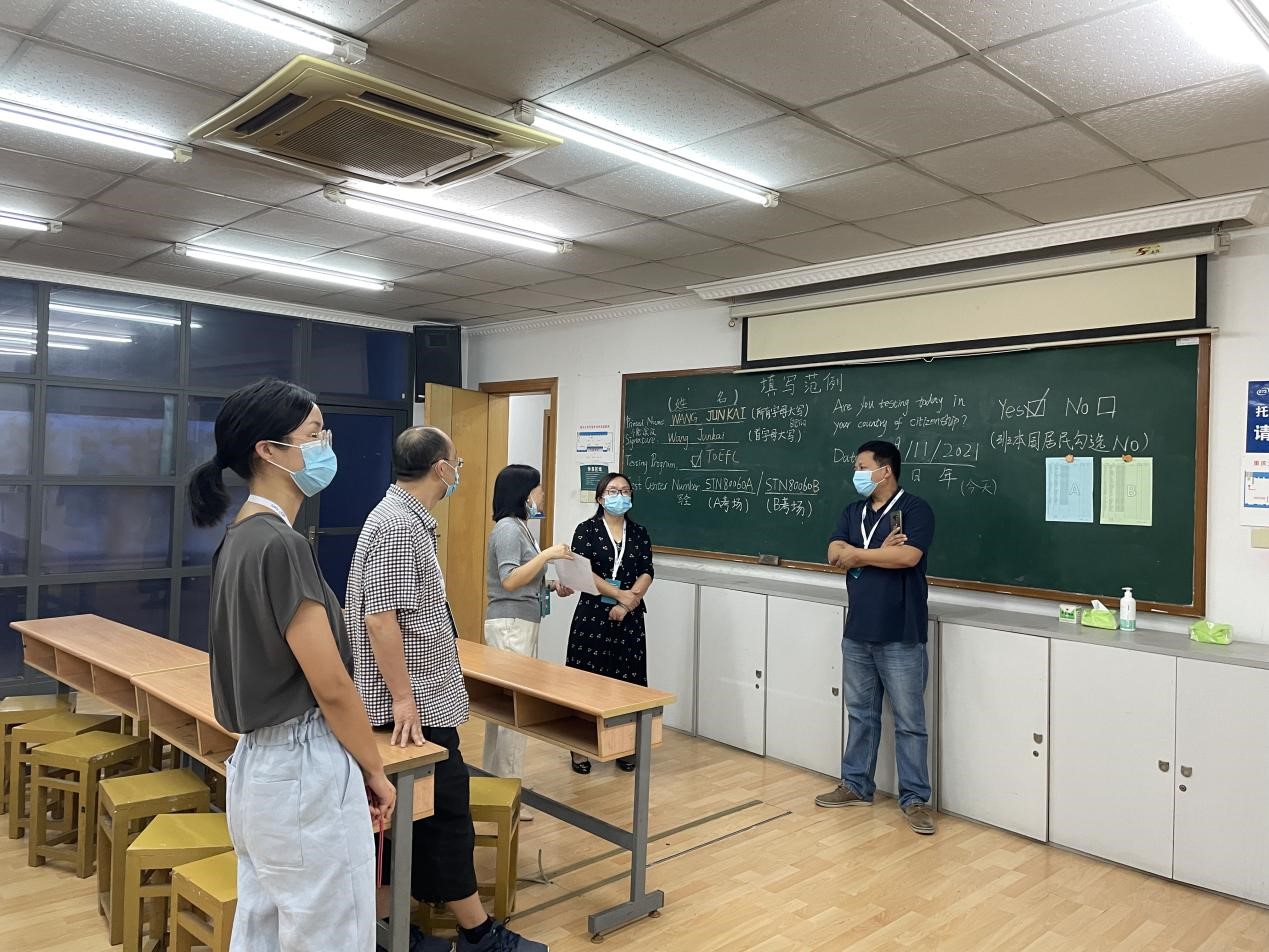 托福考点,就考场布置、考试流程、考生安排、考务人员培训、疫情防控等问题展开深入交流。