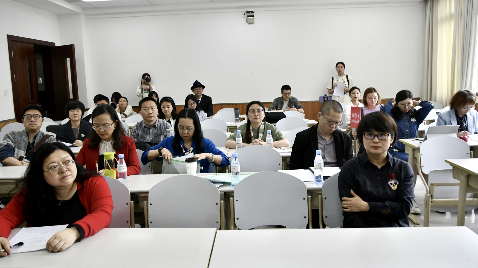 本次比赛有14位青年教师参加, 其中包括11位近年来入职的青年博士。比赛分两组同时进行,采用了无生上课的方式。每位老师进行了20分钟的教学展示,并提交了教学大纲,教学设计等材料。在教学展示环节,参赛教师们声情并茂,挥洒自如,有的诙谐幽默,有的沉稳大气,有的节奏明快,有的如潺潺流水,润物细无声,有的引人深思,给人以启迪。各位老师虽然风格各异,但是都以扎实的基本功,赢得了好评,内容准备充分,教学设计合理,目标明确,讲解细致,专业素养过硬。学院将推荐优秀教师代表学院参加“18漫画