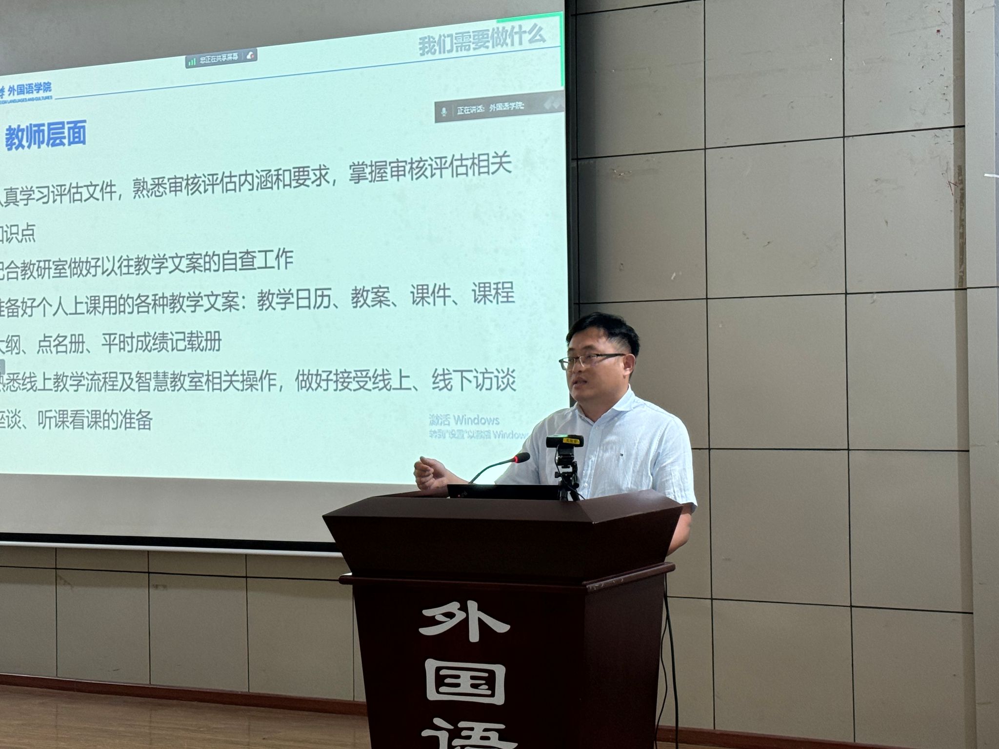 会上,莫启扬院长从学院整体发展的高度出发,详细阐述了本科教育教学审核评估的重要性和必要性。他强调,教育教学审核评估是学院提升教育教学质量、推动内涵式发展的关键契机,全体教师要深刻认识到审核评估工作的重大意义,积极参与其中。